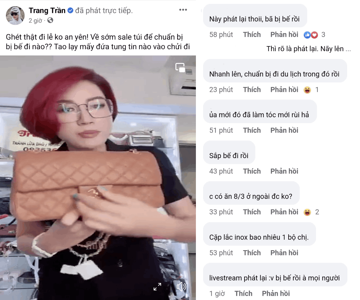 Mới nhất, Trang Trần livestream bán hàng trên trang cá nhân nhưng bị phát hiện là phát lại.