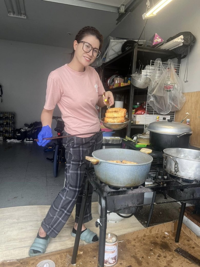 Trang Trần chia sẻ cô làm nhiều công việc tay chân ở xứ cờ hoa.