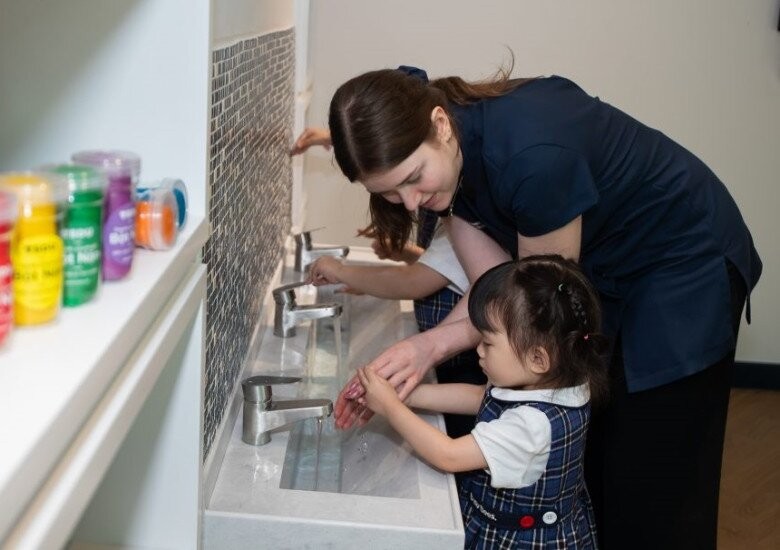 Bàn tay là nơi phát tán vi khuẩn nhiều hơn bất cứ bộ phận nào trên cơ thể. Do đó rửa tay thường xuyên bằng xà phòng và rửa đúng cách theo các bước của Bộ Y tế sẽ giúp phòng được nhiều tác nhân gây bệnh. Theo đó, thói quen này sẽ giúp trẻ không bị lây nhiễm mầm bệnh, nhất là khi trẻ thường dùng tay bẩn để bốc thức ăn và hầu như không ý thức về việc phải rửa tay trước.