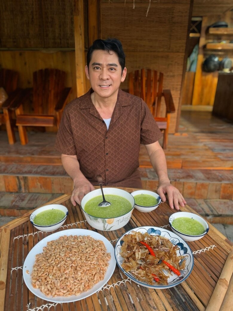 Nam tài tử giờ đây ăn ít hơn và ăn những món mềm nên anh nấu nhiều loại cháo khác nhau, trong đó có cháo lươn bổ dưỡng. Tô cháo vàng sánh, điểm chút tiêu, hành, rau răm và lươn xé nhỏ, hấp dẫn cả về màu sắc lẫn dinh dưỡng.