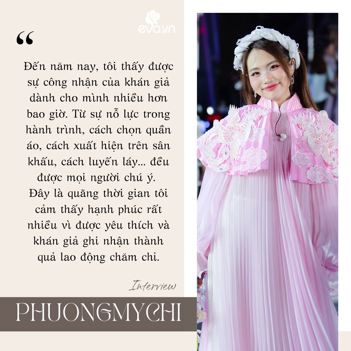 Trong những năm qua, điều cốt lõi để tôi thực hiện những mong muốn của bản thân đều xuất phát từ tình yêu nghệ thuật. Tôi cứ chăm chỉ, bền bỉ để cống hiến năng lượng của mình vì tình yêu đó. Có thể do cơ duyên mà cơ hội đến nhiều hơn trong 2024 - 2025, khán giả cũng thấy tần suất Phương Mỹ Chi xuất hiện nhiều và có sự quan tâm hơn trước. Đây là khoảng thời gian mà tôi vui nhất vì mình có cơ hội phát hết năng lượng, để khán giả nhìn thấy Chi trưởng thành, nghiêm túc lao động, cống hiến như thế nào.