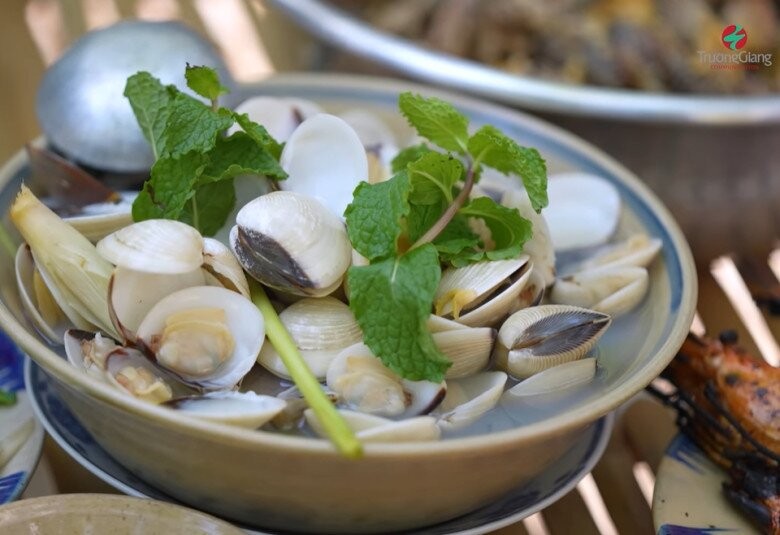 Nghêu hấp nước dừa ngọt thanh do ca sĩ Lâm Hùng tự tay thực hiện.