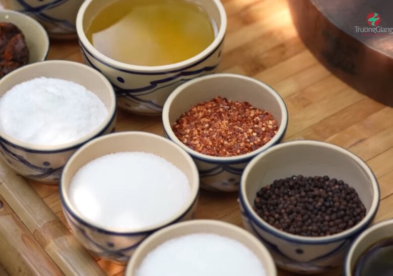 Dàn gia vị đặc trưng của ẩm thực Việt: Muối, đường, tiêu, ớt bột và dầu ăn...