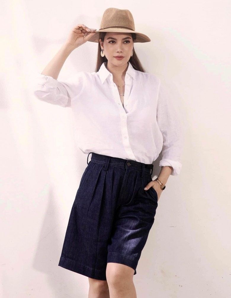 Sinh sống tại đất Sài Gòn và hoạt động nghệ thuật nên đôi khi, phong cách ăn mặc đi làm của nữ chủ tịch cũng có nhiều nét phóng khoáng, mới mẻ. Đôi lúc cô gây bắt mắt với chiếc quần bermuda mix cùng áo sơ mi hơi hướng menswear, vừa cá tính lại vẫn giữ được nét thanh lịch vốn có.