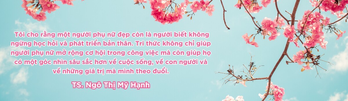 Bên cạnh đó, tôi cho rằng một người phụ nữ đẹp còn là người biết không ngừng học hỏi và phát triển bản thân. Tri thức không chỉ giúp người phụ nữ mở rộng cơ hội trong công việc mà còn giúp họ có một góc nhìn sâu sắc hơn về cuộc sống, về con người và về những giá trị mà mình theo đuổi. Người phụ có hiểu biết, tri thức còn là nền móng vững chắc cho miền giáo dục gia đình của thế hệ tương lai và chính họ sẽ tự đem lại hạnh phúc cho mình vì có thể đồng hành, chia sẻ cùng các thành viên trong gia đình của họ.