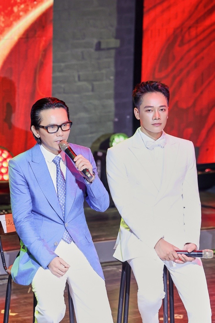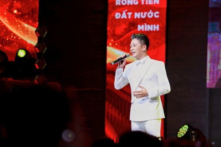 Nam ca sĩ hát live ca khúc tại buổi họp báo giới thiệu MV "Việt Nam khúc kiêu hùng".