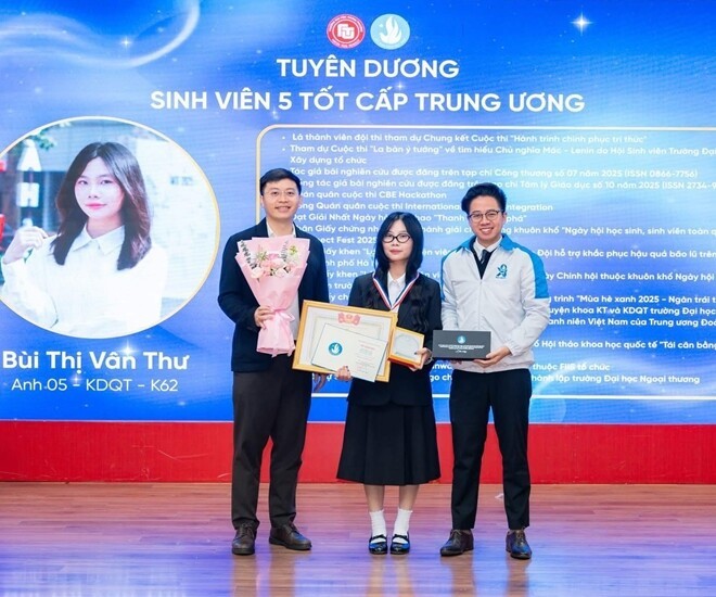 Vân Thư vinh dự nhận danh hiệu Sinh viên 5 tốt cấp Trung ương năm học 2024 - 2025