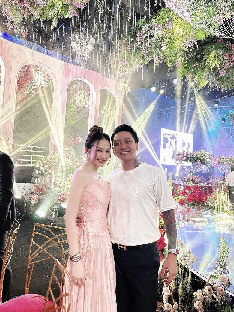 Bà xã Tuấn Hưng mix & match cùng phụ kiện trang sức đá quý, trong đó hút mắt là chiếc đồng hồ nạm kim cương quai da màu đỏ.