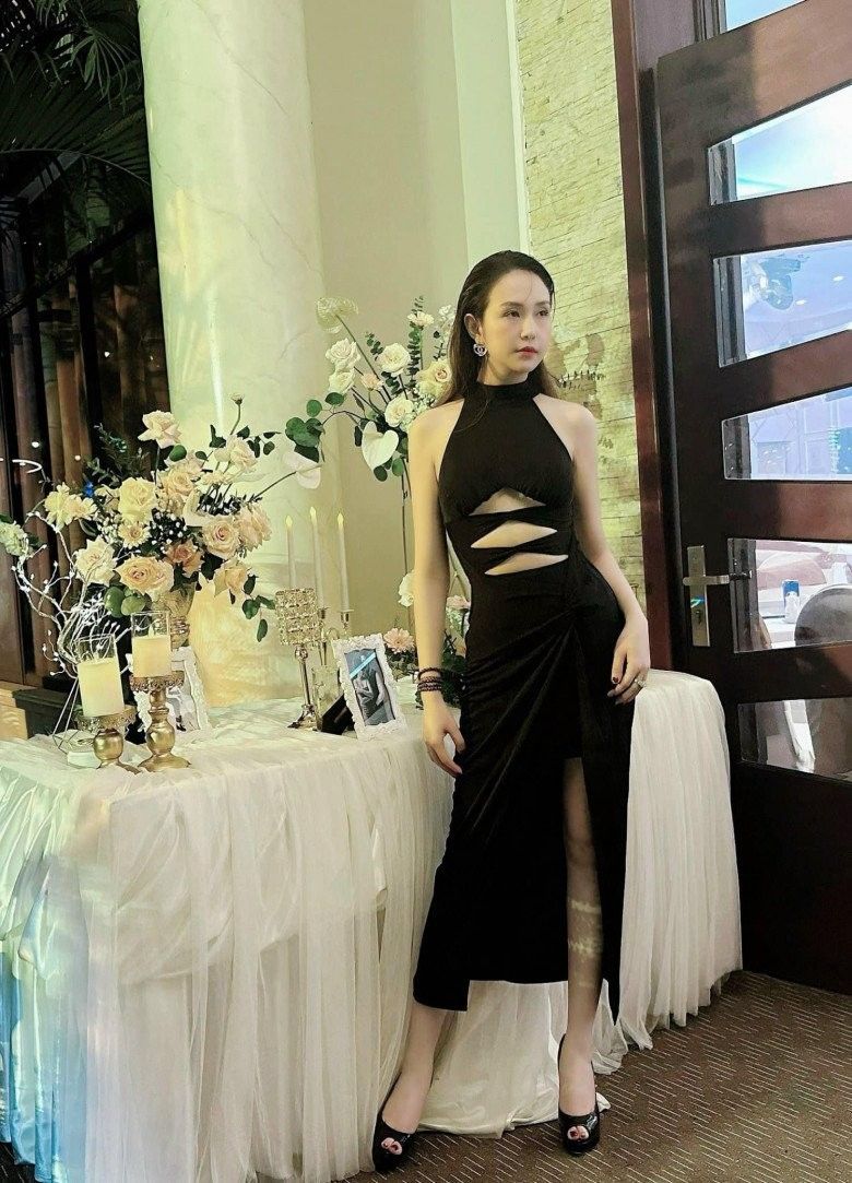 Vốn dĩ trở hữu nước da trắng ngần, gương mặt thon gọn và ngũ quan hài hòa nên bà mẹ đông con ngắm ở góc nào cũng xinh. Chiếc đầm đen tối giản nhưng lại hoàn thành đúng nhiệm vụ là tôn dáng và tôn da của người mặc hết cỡ. Thời gian gần đây, Hương Baby thường chỉn chu hơn trong phong cách ăn mặc. Cô không còn "xào nấu" lại đồ cũ nữa mà đổi mới và trịnh trọng hơn ở các sự kiện với nhiều item hơi hướng đầm hoa hậu.