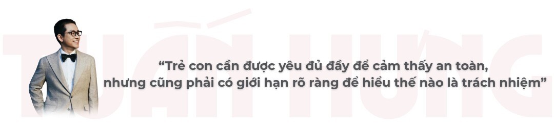 - Là một nghệ sĩ nổi tiếng và gia đình có điều kiện kinh tế tốt, Tuấn Hưng làm thế nào để các con không hình thành tâm lý “đặc quyền” hay phụ thuộc vào danh tiếng của bố mẹ?