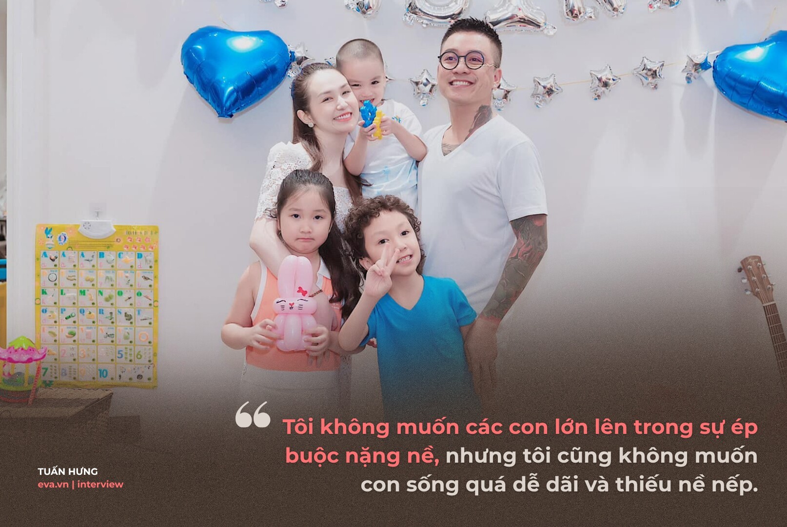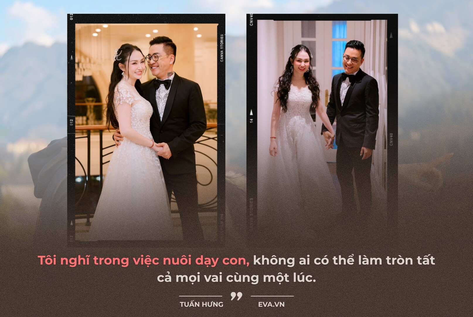 - Tuấn Hưng và vợ phân vai như thế nào trong việc giáo dục con cái, đặc biệt khi cả hai đều bận rộn với công việc riêng?
