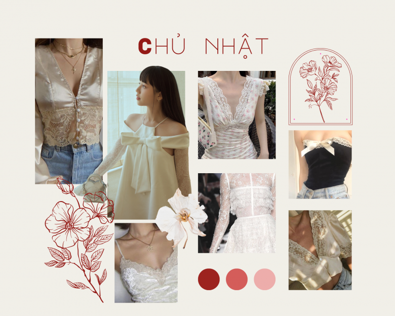 Chủ Nhật: Áo/váy phối ren