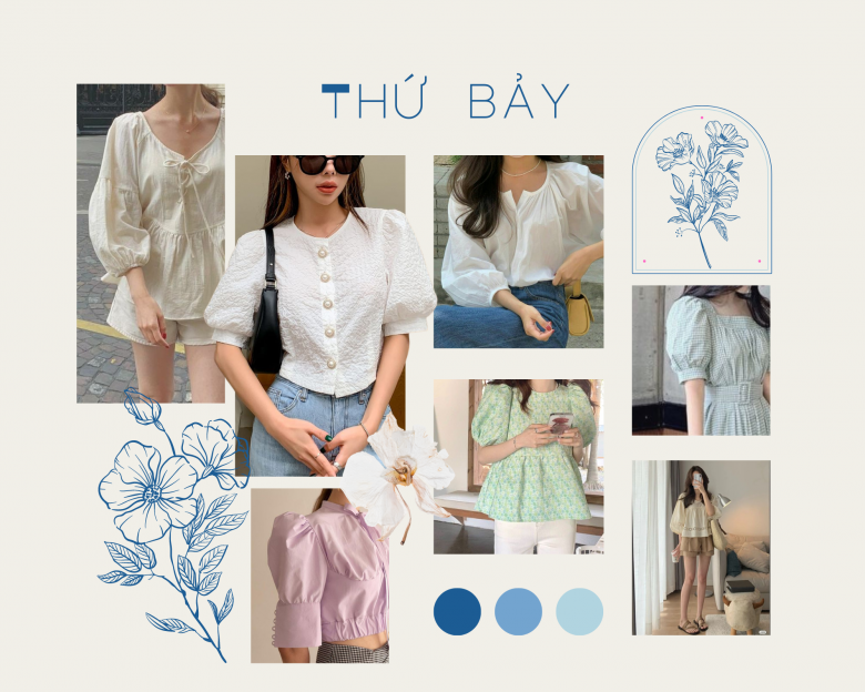 Thứ Bảy: Áo sơ mi tay phồng