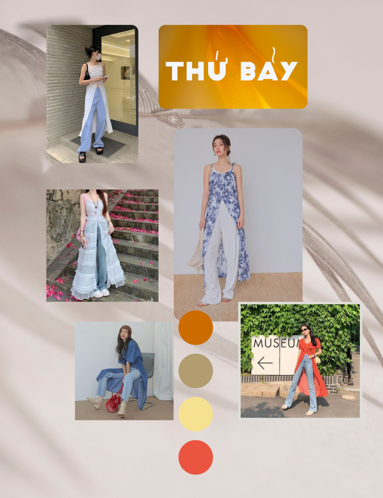 Thứ Bảy: Đầm quây dài xẻ tà + quần jeans