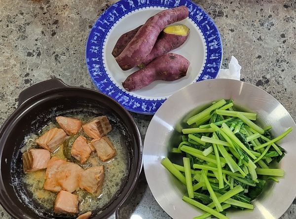 Có lúc cô thay đổi 1 chút nguồn đạm là cá hồi, thịt bò xào lăn.