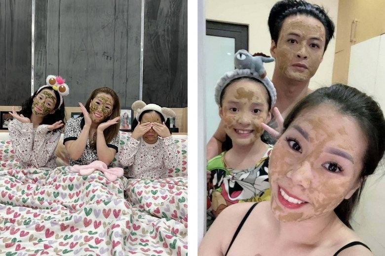 Không chỉ chăm sóc cho bản thân, bà xã Hồng Đăng cũng "làm điệu" cho chồng và 2 con để cùng có làn da đẹp.