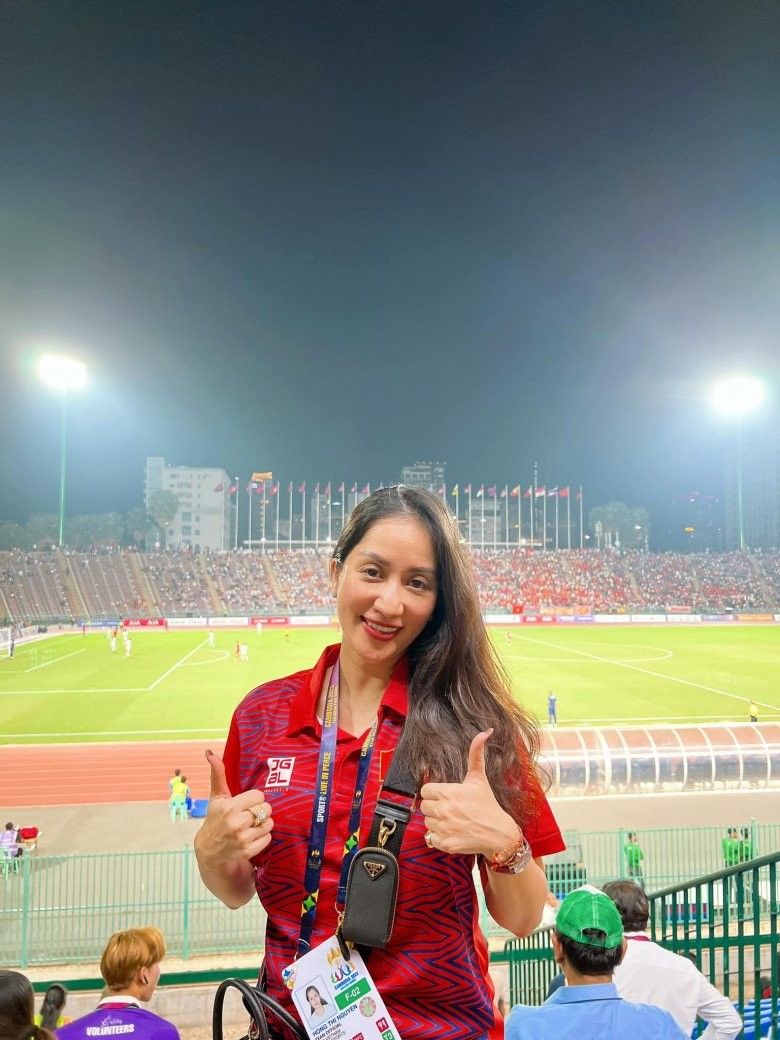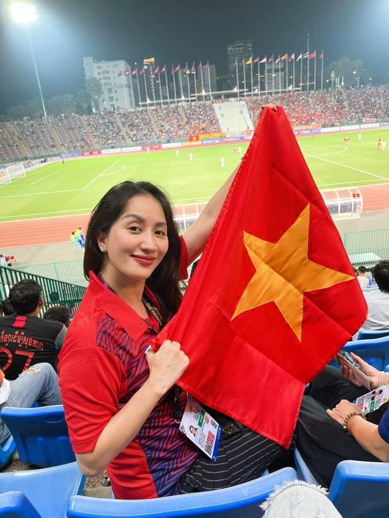 Bà bầu Khánh Thi "máu lửa", một mình ra sân xem trực tiếp trận Chung kết tại Campuchia.
