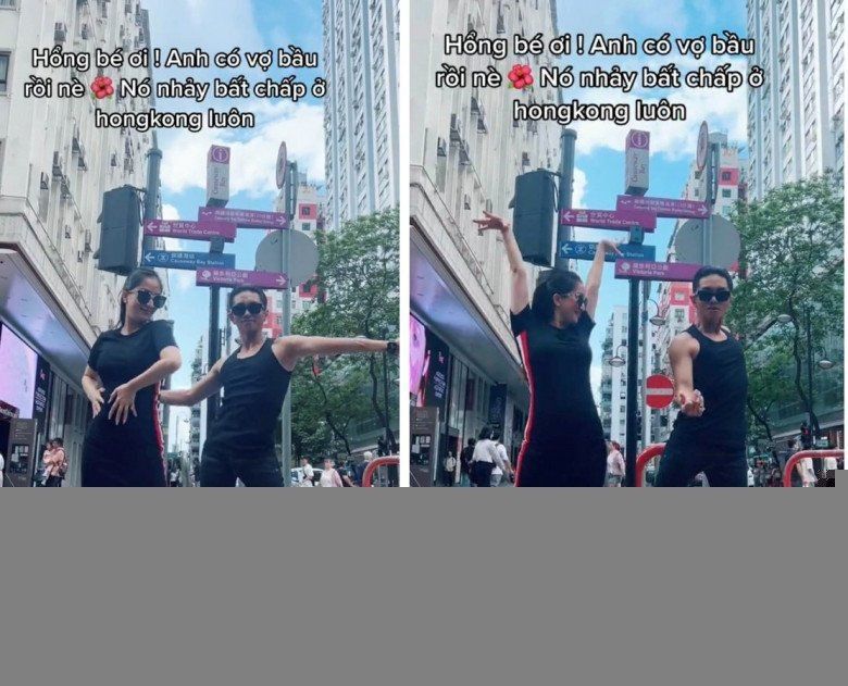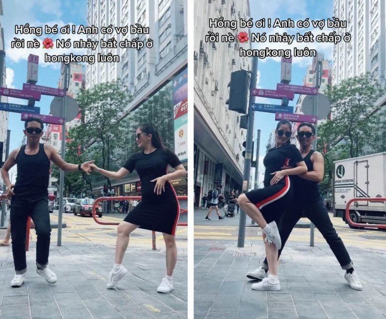 Nhắc tới "vũ điệu bụng bầu", nhiều người nghĩ đến màn "nhảy bất chấp" của vợ chồng Khánh Thi - Phan Hiển ở Hong Kong. Theo đó, dù bụng bầu đã khá lớn, Khánh Thi vẫn mặc váy ôm, thoải mái thể hiện nhiều động tác khó với ông xã.