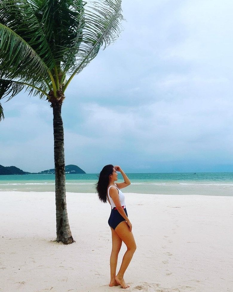 Vóc dáng nuột nà và thời thượng khi diện đồ bơi.