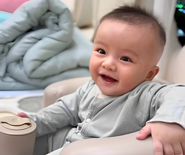 Chào đời vào năm 2024, quý tử nhà Vân Trang hưởng trọn gen ngoại hình của bố.