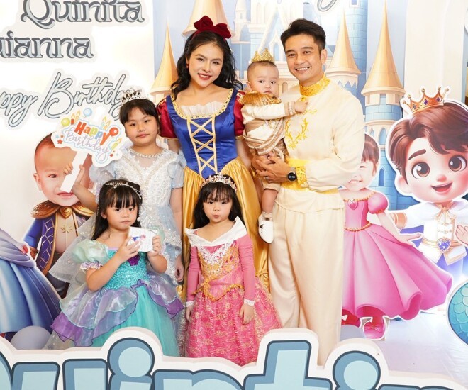 Vân Trang mừng sinh nhật tròn 4 tuổi của cặp song sinh Quinanna - Quinita.