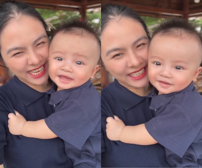 Mới đây, Vân Trang đã chia sẻ lên TikTok cá nhân đoạn video đưa quý tử về quê ăn đám giỗ của bà cố. Bé Tin gần 8 tháng tuổi được khen ngợi rất kháu khỉnh và đáng yêu, như “bản sao” của bố. Trong đoạn video, Vân Trang còn khoe mẹ ruột trẻ trung, được nhận xét trông như chị em ruột với nữ diễn viên. Khi được bà ngoại kêu cười, bé Tin liền nhoẻn miệng toe toét, khoe răng sữa dễ thương hết nấc.