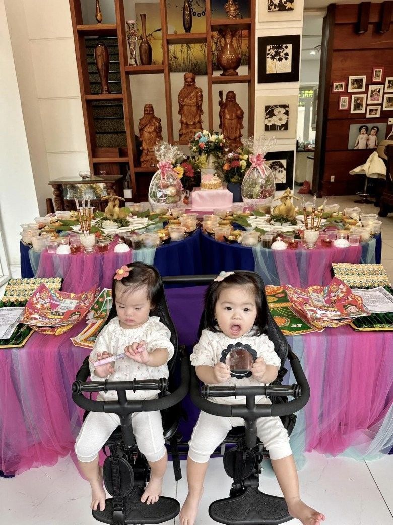 Mới đây vợ chồng diễn viên Vân Trang và ông xã doanh nhân Lê Quân cẩn thận chuẩn bị mâm tiệc thôi nôi cho cặp con sinh đôi Quianna và Quinita vô cùng hoàng tráng, thịnh soạn và nhìn không thiếu thứ gì. Theo đó, nhìn qua những bức ảnh được chia sẻ có thể thấy vợ chồng Vân Trang cẩn thận chuẩn bị mọi thứ đều làm 2 phần vì là có hai bé.