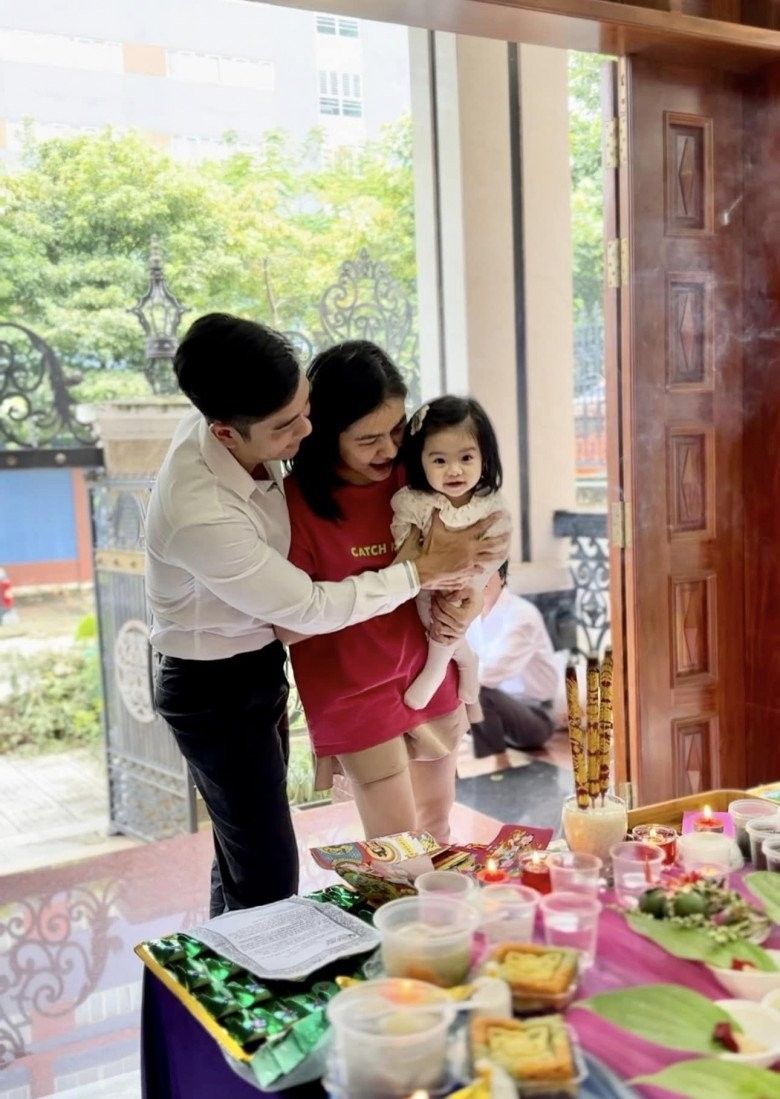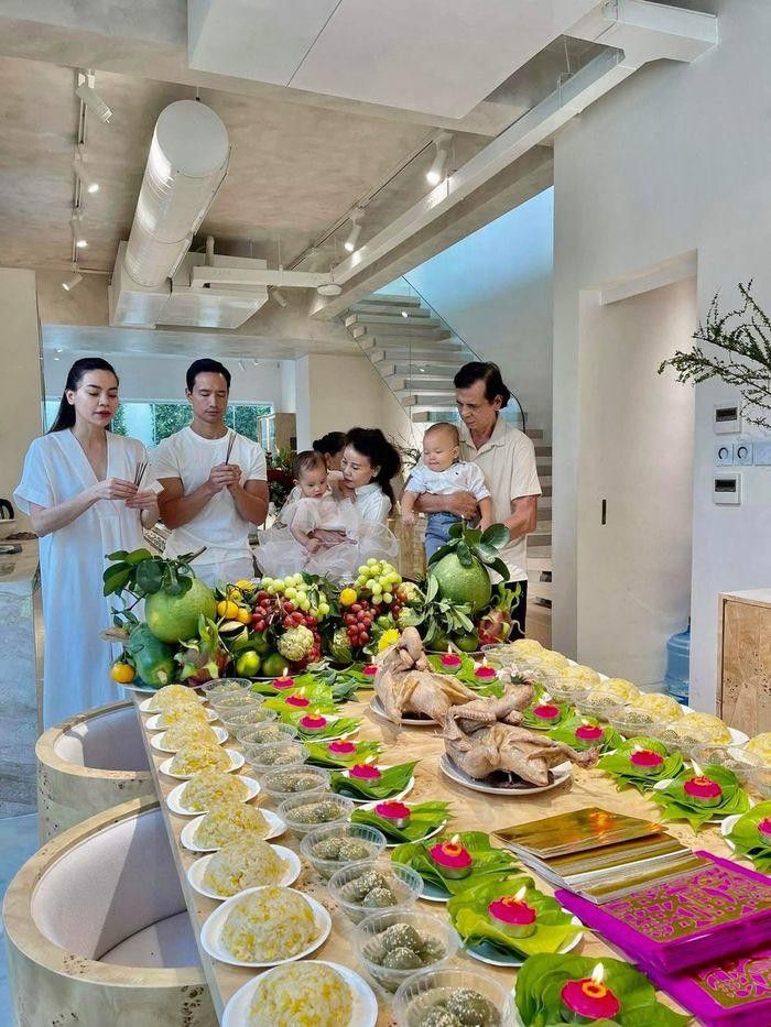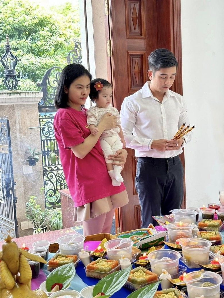 Vợ chồng Hà Hồ - Kim Lý cùng các con làm lễ, thành tâm cầu khấn những điều tốt đẹp nhất.