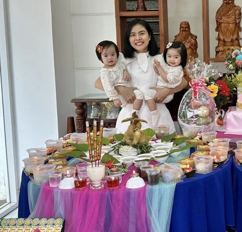 Trước đó, mâm cúng đầy tháng cho hai bé Quianna và Quinita được mẹ Vân Trang chuẩn bị cũng khiến dân tình không khỏi xuýt xoa vì vừa đẹp mắt , vừa thịnh soạn lại rất cầu kì. Qua đó có thể thấy vợ chồng Vân Trang Lê Quân rất quan tâm đến các mốc kỉ niệm của hai con.