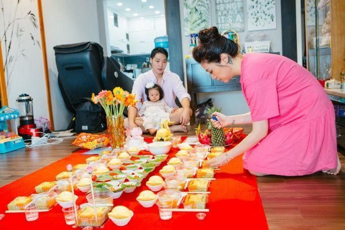 Pha Lê và chồng cũ người Hàn Quốc tự thay chuẩn bị cúng thôi nôi cho em bé Ốc.