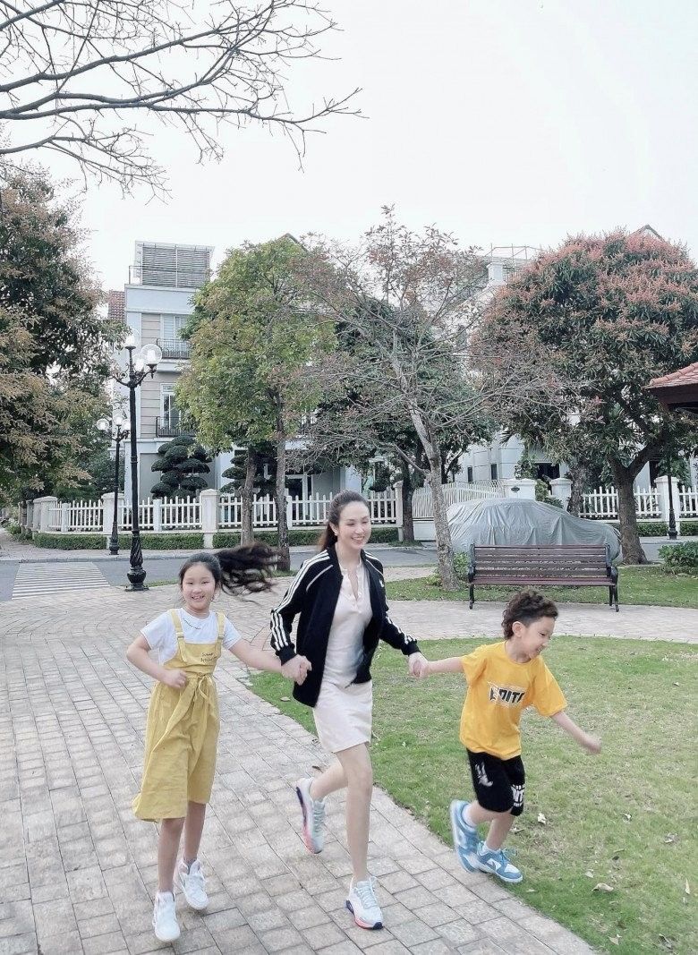 Dù làm mẹ 3 con nhưng cô vẫn luôn khiến bao người trầm trồ bởi vóc dáng lụa là cùng nhan sắc rạng rỡ. Không những thế, vợ đẹp của Tuấn Hưng cũng là một người khéo chăm chồng con. Cô luôn quan tâm đến việc giữ gìn nhan sắc cho chồng và phát triển ngoại hình cho 3 con.