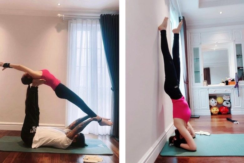 Bà mẹ 3 con thường "kết thân" với bộ môn yoga, vừa tăng cường sự dẻo dai cho cơ thể vừa giúp "đốt mỡ" toàn thân. Cũng chính vì lợi ích tuyệt vời của yoga nên Hương Baby cũng thường xuyên "rủ rê" chồng cùng tập luyện.