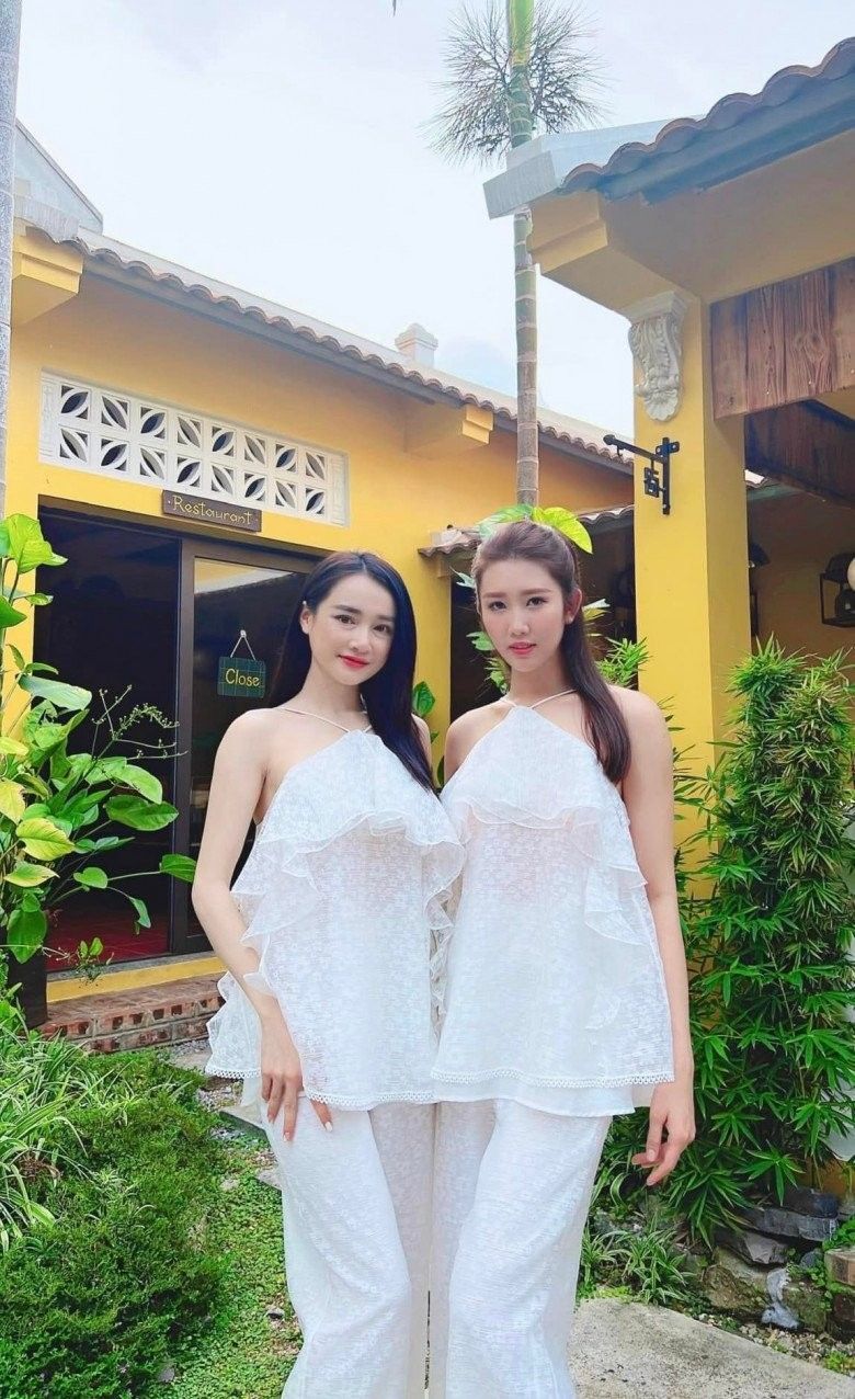 Thuý Ngân vốn sở hữu chiều cao của một thí sinh hoa hậu, Nhã Phương bé nhỏ hơn nhưng cặp chị em vẫn rất tinh tế trong khâu chọn áo quần để cùng tôn dáng.