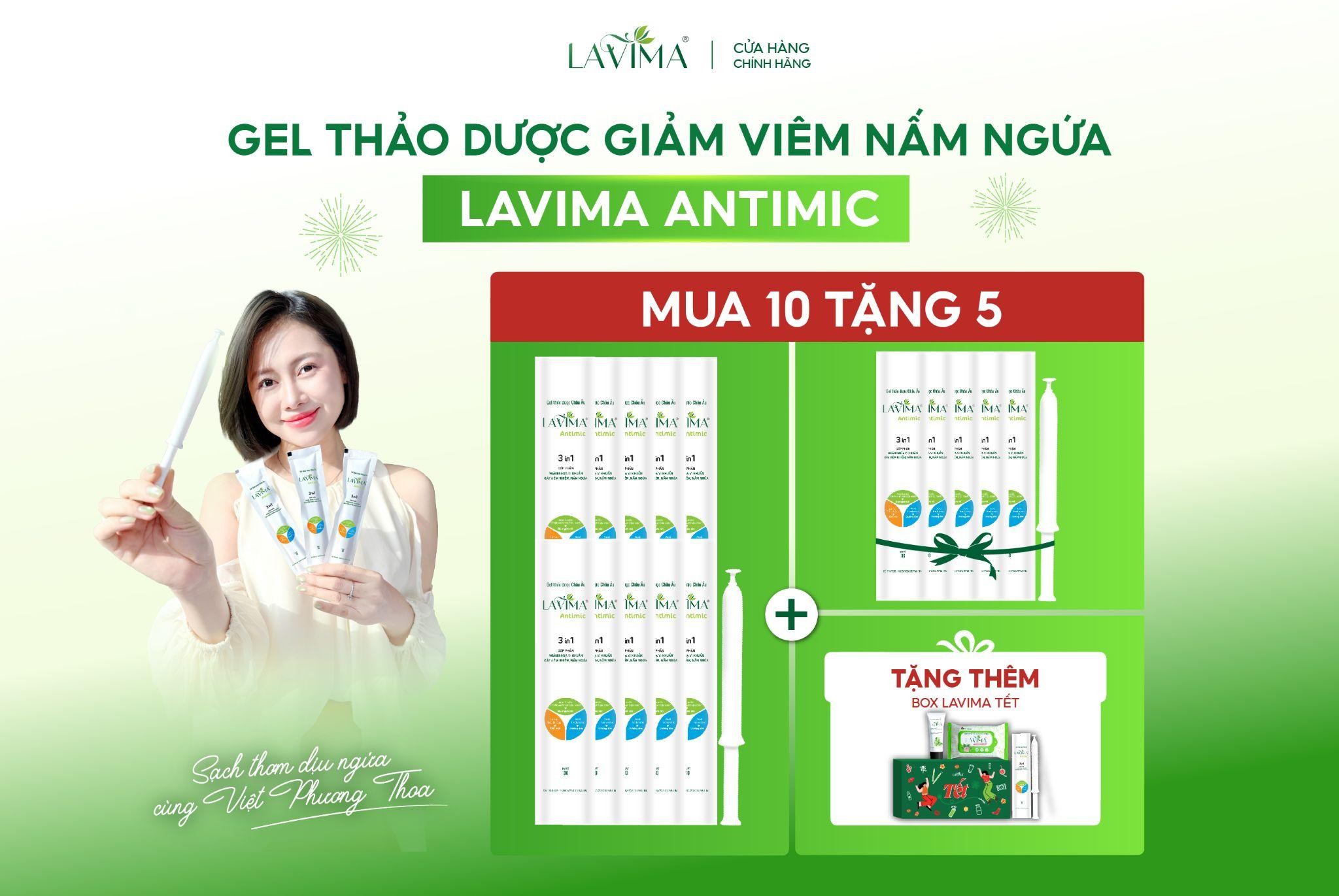 Lavima Antimic triển khai ưu đãi Mua 10 Tặng 5, giúp chị em dễ dàng chọn mua sản phẩm chính hãng và chủ động chăm sóc vùng kín tại nhà trước Tết.