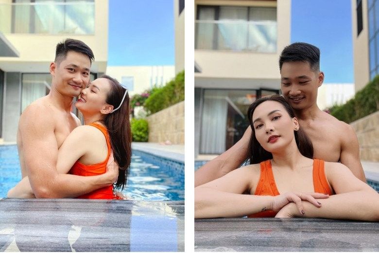 Diện bikini khoe vóc dáng quyến rũ, Bảo Thanh khiến các fan trầm trồ. Ngay cả ông xã của cô cũng không giấu được sự si mê trong đôi mắt, mãi ngắm nhìn body lụa là của vợ.