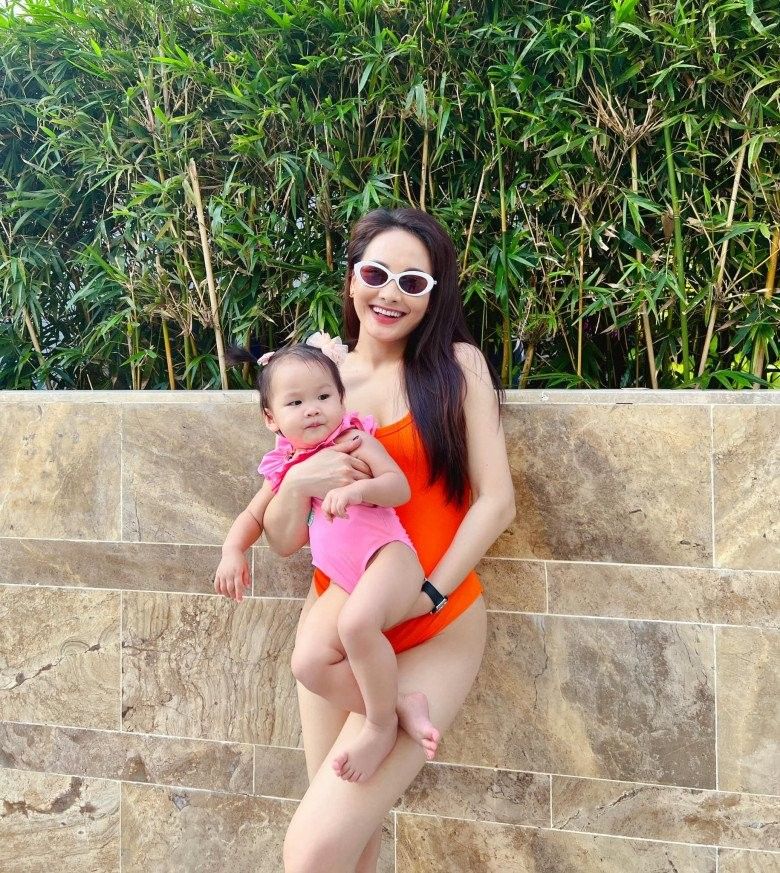 Cụ thể, nữ diễn viên vừa đăng tải loạt ảnh đi bơi bên ông xã và cô con gái nhỏ. Có thể thấy, những khung ảnh của cô nàng bên chồng và con gái trông vô cùng hạnh phúc và vui vẻ bên nhau. Tuy nhiên, đáng chú ý nhất chính là body của mỹ nhân Sống Chung Với Mẹ Chồng ở thời điểm hiện tại. Khi diện trên mình bộ đồ tắm có màu nổi bật, nữ diễn viên gây sốt với body thon gọn, quyến rũ với đường cong sắc nét.