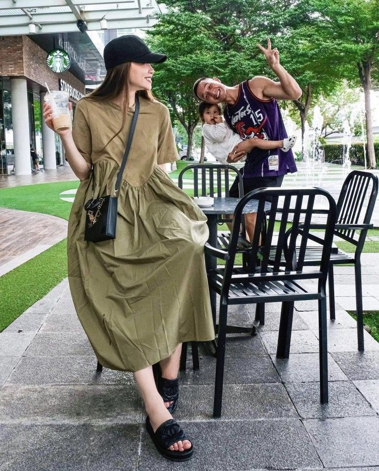 Vào mùa hè, bà mẹ ba con ứng dụng nhiều trang phục mỏng nhẹ xuyên thấu và hút ẩm tốt để xuất hiện trước công chúng.