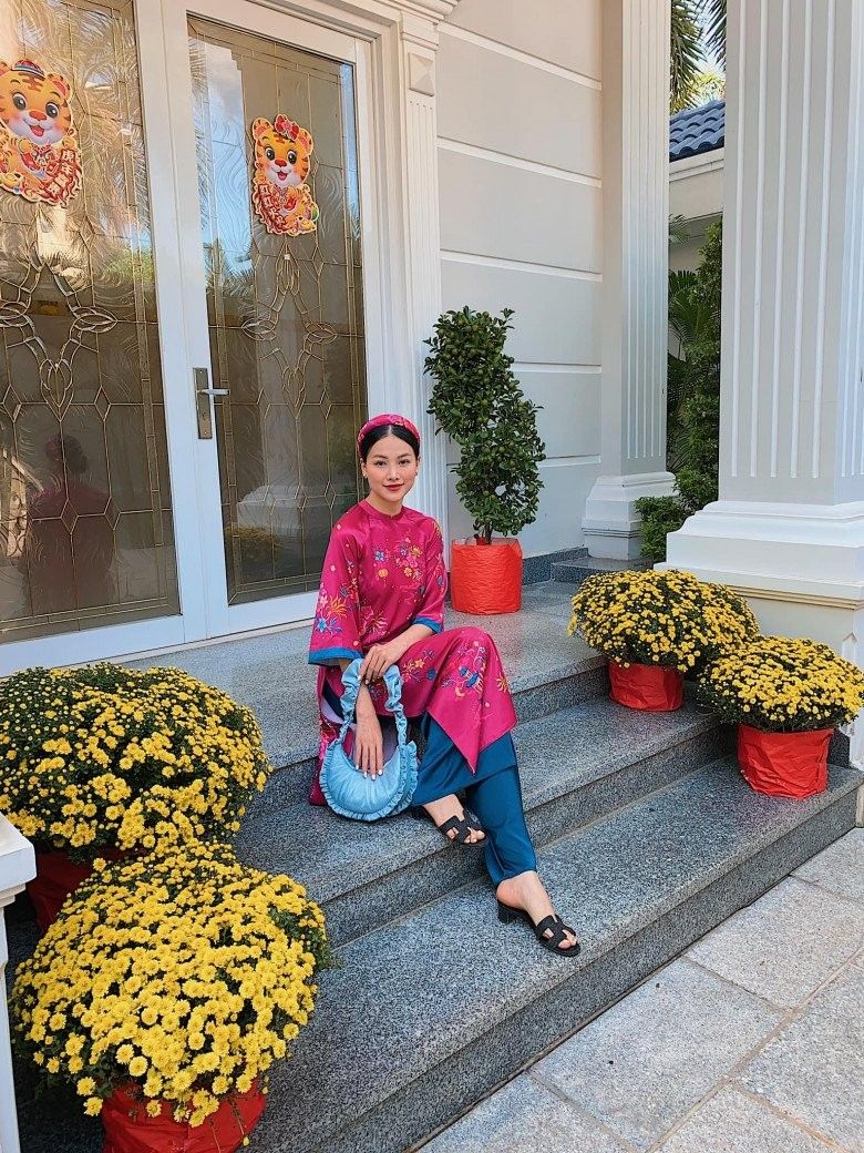 Giữa một rừng mỹ nhân Vbiz đang đua sắc với các thiết kế áo dài sắc màu rực rỡ, kiểu cách độc lạ chào đón Xuân thì Phương Khánh lại nổi bần bật với một item giản đơn, tế nhị. Item được may đo không bó sát với phần ống tay dài vừa phải. Thiết kế tay bồng còn có ưu điểm che khéo bắp tay với chị em dáng mũm mĩm. Đây quả xứng đáng là 1 thiết kế đáng học hỏi cho cánh má hồng dịp Tết này.