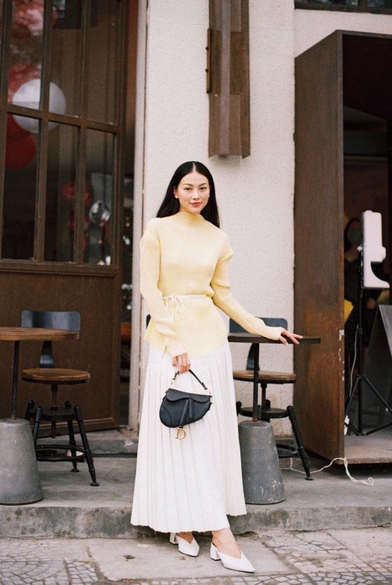 Kinh tế hơn, có lẽ nàng chỉ cần sắm 1 chiếc chân váy midi màu trắng dài chấm mắt cá chân là đã có thể làm mới bản thân với nhiều outfit nữ tính, dịu dàng.