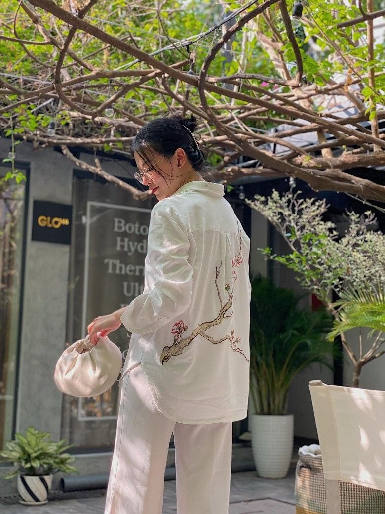 Chị em yêu thích style nhẹ nhàng nhưng vẫn muốn tạo điểm nhấn mới lạ thì có thể ngâm cứu những item áo/váy thêu họa tiết mai đào.