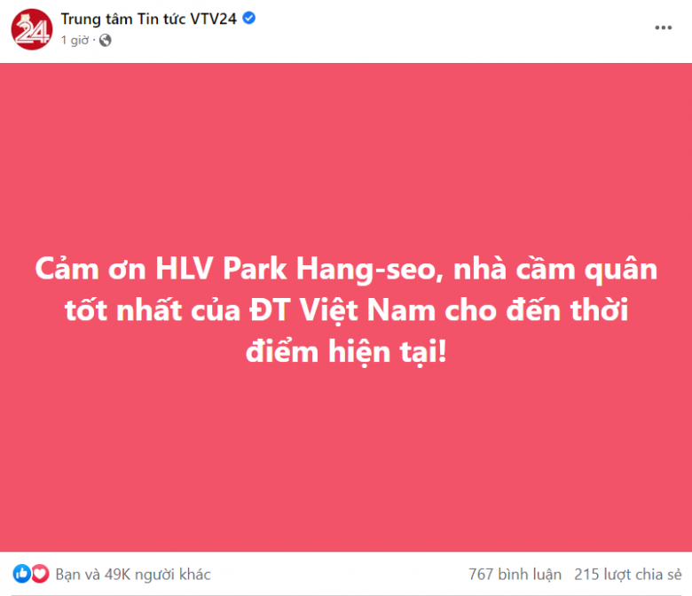 Ngoài ra, đồng loạt các trang thông tin điện tử đều gửi lời cảm ơn và chào tạm biệt HLV Park Hang Seo khiến công chúng không khỏi xúc động.