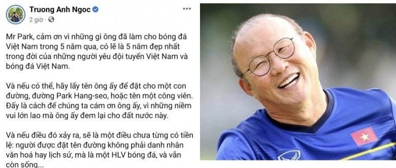 Nhà báo Trương Anh Ngọc gửi lời cảm ơn chân thành đến HLV Park Hang Seo.