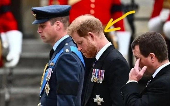 Trong tang lễ Nữ hoàng vừa rồi, Hoàng tử Harry thể hiện sự đau lòng và buồn bã suốt sự kiện. Anh không mặc quần áo quân phục, thỉnh thoảng cúi đầu. Hoàng tử đi theo sau quan tài của Nữ hoàng, khác hẳn với quân phục của anh trai Hoàng tử William, Vua Charles, Công chúa Anne, Hoàng tử Edward đứng bên cạnh gia đình. Có thể nhận ra chỉ có Harry và chú là Hoàng tử Andrew là không mặc quân phục.