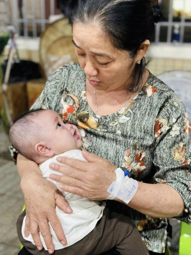 Dù đang bị ốm, mẹ vợ Lê Dương Bảo Lâm vẫn tranh thủ ghé về nhà để cưng nựng cháu trai nhỏ.