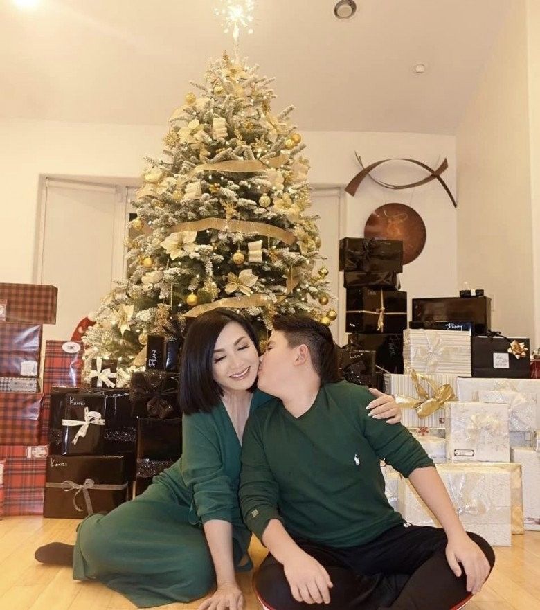 Khoảnh khắc được con trai hôn lên má khiến nữ ca sĩ vô cùng hạnh phúc và hài lòng với niềm vui hiện tại.