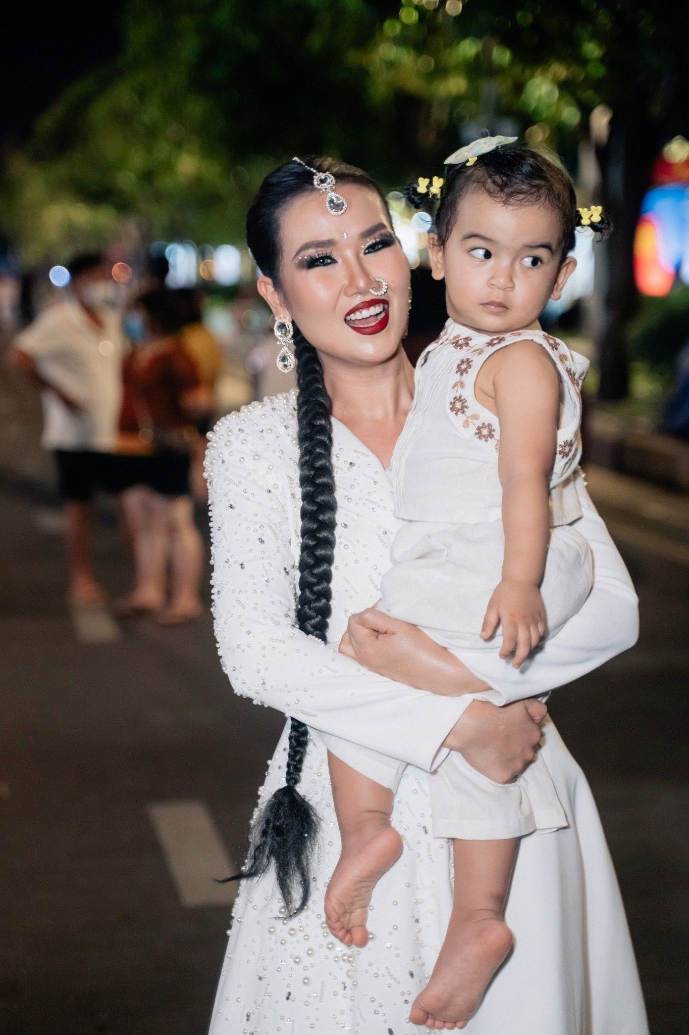 Moon thêm tháng tuổi thêm phần cứng cáp, dạn dĩ nên được mẹ cho đi theo tới các tụ điểm trình diễn. Lúc này, mẹ con nhà Võ Hạ Trâm lại được dịp ăn mặc đồng điệu cùng nhau.