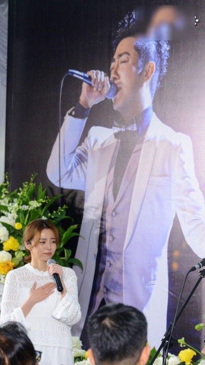 Đến lễ tưởng niệm của chồng, Vương Đồng mặc bộ váy trắng mà cô được anh mua tặng. Nữ diễn viên thực sự xót xa khi phải tiễn đưa anh. Suốt buổi diễn, cô vừa rơi nước mắt vừa hát theo mọi người. Hình ảnh này thực sự khiến khán giả xúc động.