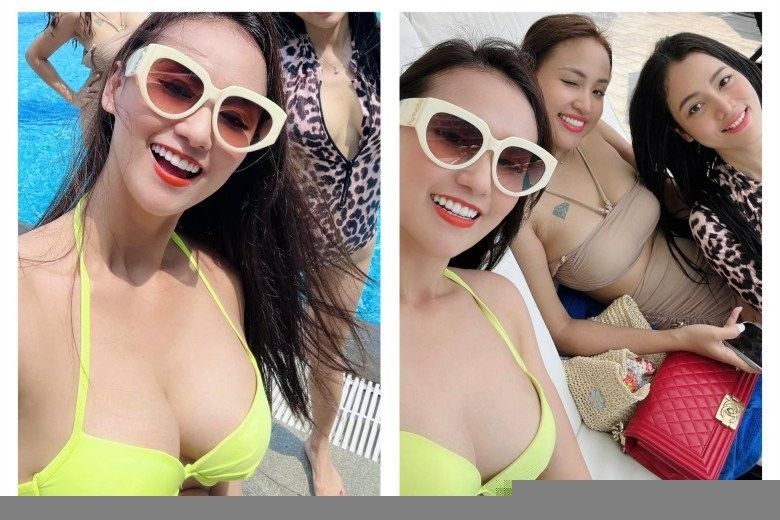 Hình ảnh "mướt mát" của Lã Thanh Huyền bên bạn bè nhận được sự chú ý từ đông đảo cư dân mạng. Làn da trắng mịn không tì vết cùng cặp tuyết lê tuyệt mỹ của cô làm ai nấy không ngớt lời xuýt xoa.