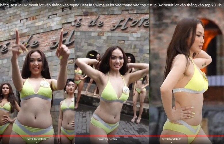 Bùi Lý Thiên Hương khoe bước đi "dẻo quẹo" với phần hông đánh chất lượng. Cô làm tóc và trang điểm vô cùng bắt mắt. Hình thể của chân dài An Giang so với mùa Miss Universe Vietnam 2022 đã cải thiện hơn rất nhiều.
