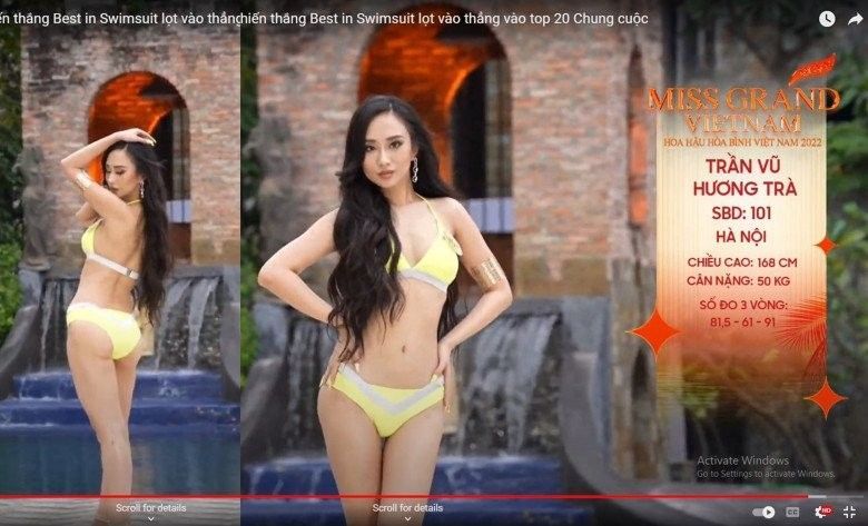 Trần Vũ Hương Trà mang SBD 101 tới từ Hà Nội là thí sinh hiếm hoi ít bị "dìm hàng" trên sóng live. Cô nàng sở hữu chiều cao khá khiêm tốn nhưng lại có hình thể vòng eo cùng vòng 3 đẹp. Song tổng thể lại hơi thiếu săn chắc so với chuẩn quốc tế.